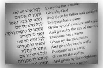To name is to create. According to the sacred story, God created by naming. Name is how we are known, how we know ourselves. Name is reputation, legacy; it is our past and our future. Everyone has a name, Given by God, And given by father and mother….(Zelda). Adam, who was invited to name the animals, became a partner in Creation and this extended even to naming God who was eager to know: “What will you name me? How will you bring me into the world?” This theme reflects our ongoing task of naming ourselves and naming God.
